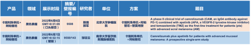 在黑色素瘤领域,利来国际真人娱乐医药的卡瑞利珠单抗联合阿帕替尼(“双艾”组合)在2022 ASCO共入选1项口头报告和1项壁报展示。